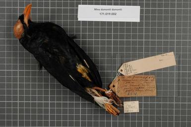 Keywords: Naturalis Biodiversity Center - RMNH.AVES.144806 1 - Mino dumontii dumontii Lesson, 1827 - Sturnidae - bird skin specimen.jpeg artwork Dimensions artwork Document type Sturnidae Mino Individual count 1 Infraspecific epithet dumontii Infraspecific rank Institution Naturalis Kind of unit artwork Kind of unit specimen skin Life stage N Nw Guinea Boven Tar-rivier Aboemané Medium artwork Nomenclatural code ADDITIONAL info KG Occurrence ID page Other fields Other versions artwork Permission license Naturalis donation CC-0 Publication location Scientific name Mino dumontii dumontii Lesson 1827 Scientific name authorship Lesson 1827 male Source url http //bioportal naturalis nl Specific epithet dumontii State or province N Nw Guinea Subject keywords artwork Subject keywords publication Title artwork Title publication Type status Uploaded with GWToolset Naturalis_Biodiversity_Center_-_RMNH AVES 144806_1_-_Mino_dumontii_dumontii_Lesson _1827_-_Sturnidae_-_bird_skin_specimen http //medialib naturalis nl/file/id/RMNH AVES 144806_1/format/large Media donated by Naturalis Biodiversity Center Songbird specimens at Naturalis Biodiversity Center Mino Mino dumontii |