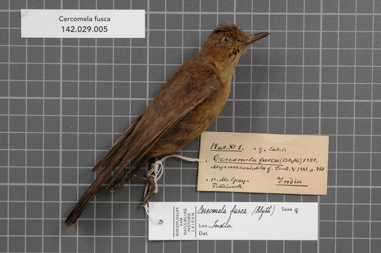 Keywords: Naturalis Biodiversity Center - RMNH.AVES.145046 1 - Cercomela fusca (Blyth, 1851) - Turdidae - bird skin specimen.jpeg artwork Dimensions artwork Document type Turdidae Cercomela Individual count 1 Infraspecific epithet Infraspecific rank Institution Naturalis Kind of unit artwork Kind of unit specimen skin Life stage India Medium artwork Nomenclatural code ADDITIONAL identification info No name ADDITIONAL label info female Indostein pr Mr gray old labele by Temm Sex remark Finsch label female label Occurrence ID page Other fields Other versions artwork Permission license Naturalis donation CC-0 Publication location Scientific name Cercomela fusca Blyth 1851 Scientific name authorship Blyth 1851 female Source url http //bioportal naturalis nl Specific epithet fusca State or province Subject keywords artwork Subject keywords publication Title artwork Title publication Type status Uploaded with GWToolset Naturalis_Biodiversity_Center_-_RMNH AVES 145046_1_-_Cercomela_fusca_ Blyth _1851 _-_Turdidae_-_bird_skin_specimen http //medialib naturalis nl/file/id/RMNH AVES 145046_1/format/large Media donated by Naturalis Biodiversity Center Songbird specimens at Naturalis Biodiversity Center Oenanthe fusca museum specimens |