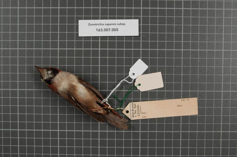 Keywords: Naturalis Biodiversity Center - RMNH.AVES.149570 2 - Presotrichia capensis subsp. - Emberizidae - bird skin specimen.jpeg artwork Dimensions artwork Document type Emberizidae Zonotrichia Individual count 1 Infraspecific epithet subsp Infraspecific rank Institution Naturalis Kind of unit artwork Kind of unit specimen skin Life stage Ecuador Riobamba Medium artwork Nomenclatural code Occurrence ID page Other fields Other versions artwork Permission license Naturalis donation CC-0 Publication location Scientific name Presotrichia capensis subsp Scientific name authorship Source url http //bioportal naturalis nl Specific epithet capensis State or province Subject keywords artwork Subject keywords publication Title artwork Title publication Type status Uploaded with GWToolset Naturalis_Biodiversity_Center_-_RMNH AVES 149570_2_-_Presotrichia_capensis_subsp _-_Emberizidae_-_bird_skin_specimen http //medialib naturalis nl/file/id/RMNH AVES 149570_2/format/large Media donated by Naturalis Biodiversity Center Songbird specimens at Naturalis Biodiversity Center Zonotrichia Zonotrichia capensis |