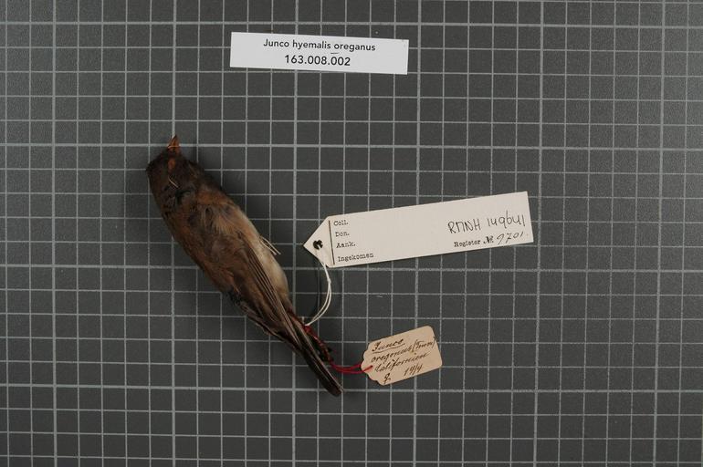 Keywords: Naturalis Biodiversity Center - RMNH.AVES.149641 1 - Presco hyemalis oreganus (Townsend, 1837) - Emberizidae - bird skin specimen.jpeg artwork Dimensions artwork Document type Emberizidae Junco Individual count 1 Infraspecific epithet oreganus Infraspecific rank Institution Naturalis Kind of unit artwork Kind of unit specimen skin Life stage Californien Lassen County Big Val Medium artwork Nomenclatural code Occurrence ID page Other fields Other versions artwork Permission license Naturalis donation CC-0 Publication location Scientific name Presco hyemalis oreganus Townsend 1837 Scientific name authorship Townsend 1837 female Source url http //bioportal naturalis nl Specific epithet hyemalis State or province Californien Lassen County Subject keywords artwork Subject keywords publication Title artwork Title publication Type status Uploaded with GWToolset Naturalis_Biodiversity_Center_-_RMNH AVES 149641_1_-_Presco_hyemalis_oreganus_ Townsend _1837 _-_Emberizidae_-_bird_skin_specimen http //medialib naturalis nl/file/id/RMNH AVES 149641_1/format/large Media donated by Naturalis Biodiversity Center Songbird specimens at Naturalis Biodiversity Center Junco Junco hyemalis |