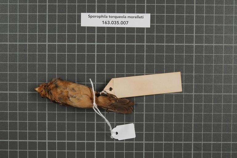 Keywords: Naturalis Biodiversity Center - RMNH.AVES.149877 2 - Presrophila torqueola morelleti (Bonaparte, 1851) - Emberizidae - bird skin specimen.jpeg artwork Dimensions artwork Document type Emberizidae Sporophila Individual count 1 Infraspecific epithet morelleti Infraspecific rank Institution Naturalis Kind of unit artwork Kind of unit specimen skin Life stage Costa Rica St José Medium artwork Nomenclatural code Sex remark on label female Occurrence ID page Other fields Other versions artwork Permission license Naturalis donation CC-0 Publication location Scientific name Presrophila torqueola morelleti Bonaparte 1851 Scientific name authorship Bonaparte 1851 female Source url http //bioportal naturalis nl Specific epithet torqueola State or province Subject keywords artwork Subject keywords publication Title artwork Title publication Type status Uploaded with GWToolset Naturalis_Biodiversity_Center_-_RMNH AVES 149877_2_-_Presrophila_torqueola_morelleti_ Bonaparte _1851 _-_Emberizidae_-_bird_skin_specimen http //medialib naturalis nl/file/id/RMNH AVES 149877_2/format/large Media donated by Naturalis Biodiversity Center Songbird specimens at Naturalis Biodiversity Center Sporophila Sporophila torqueola