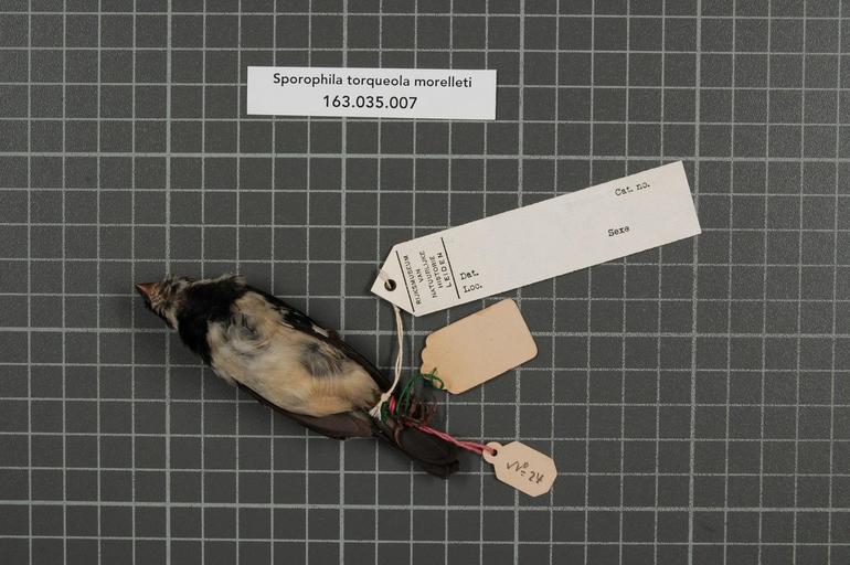 Keywords: Naturalis Biodiversity Center - RMNH.AVES.149882 2 - Presrophila torqueola morelleti (Bonaparte, 1851) - Emberizidae - bird skin specimen.jpeg artwork Dimensions artwork Document type Emberizidae Sporophila Individual count 1 Infraspecific epithet morelleti Infraspecific rank Institution Naturalis Kind of unit artwork Kind of unit specimen skin Life stage Honduras San Pedro Medium artwork Nomenclatural code Occurrence ID page Other fields Other versions artwork Permission license Naturalis donation CC-0 Publication location Scientific name Presrophila torqueola morelleti Bonaparte 1851 Scientific name authorship Bonaparte 1851 male Source url http //bioportal naturalis nl Specific epithet torqueola State or province Subject keywords artwork Subject keywords publication Title artwork Title publication Type status Uploaded with GWToolset Naturalis_Biodiversity_Center_-_RMNH AVES 149882_2_-_Presrophila_torqueola_morelleti_ Bonaparte _1851 _-_Emberizidae_-_bird_skin_specimen http //medialib naturalis nl/file/id/RMNH AVES 149882_2/format/large Media donated by Naturalis Biodiversity Center Songbird specimens at Naturalis Biodiversity Center Sporophila Sporophila torqueola