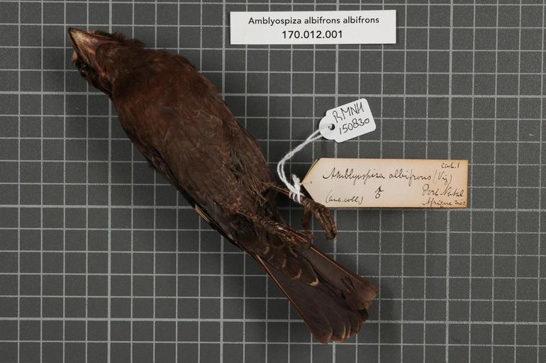 | Keywords: Naturalis Biodiversity Center - RMNH.AVES.150830 1 - Amblyospiza albifrons albifrons (Vigors, 1831) - Ploceidae - bird skin specimen.jpeg artwork Dimensions artwork Document type Ploceidae Amblyospiza Individual count 1 Infraspecific epithet albifrons Infraspecific rank Institution Naturalis Kind of unit artwork Kind of unit specimen skin Life stage Afrique Mer Port Natal Medium artwork Nomenclatural code Occurrence ID page Other fields Other versions artwork Permission license Naturalis donation CC-0 Publication location Scientific name Amblyospiza albifrons albifrons Vigors 1831 Scientific name authorship Vigors 1831 male Source url http //bioportal naturalis nl Specific epithet albifrons State or province Subject keywords artwork Subject keywords publication Title artwork Title publication Type status Uploaded with GWToolset Naturalis_Biodiversity_Center_-_RMNH AVES 150830_1_-_Amblyospiza_albifrons_albifrons_ Vigors _1831 _-_Ploceidae_-_bird_skin_specimen http //medialib naturalis nl/file/id/RMNH AVES 150830_1/format/large Media donated by Naturalis Biodiversity Center Songbird specimens at Naturalis Biodiversity Center Amblyospiza Amblyospiza albifrons |