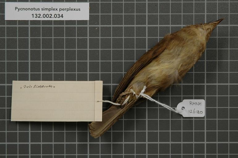 | Keywords: Naturalis Biodiversity Center - RMNH.AVES.126120 2 - Pycnonotus simplex perplexus Chasen & Kloss, 1929 - Pycnonotidae - bird skin specimen.jpeg artwork Dimensions artwork Document type Pycnonotidae Pycnonotus Individual count 1 Infraspecific epithet perplexus Infraspecific rank Institution Naturalis Kind of unit artwork Kind of unit specimen skin Life stage Indonesia C Borneo upper Mahakam Blu Riv Medium artwork Nomenclatural code ADDITIONAL FAMILY INFO zu female N 33 Sex remark male z n female N 33 Occurrence ID page Other fields Other versions artwork Permission license Naturalis donation CC-0 Publication location Scientific name Pycnonotus simplex perplexus Chasen Kloss 1929 Scientific name authorship Chasen Kloss 1929 male Source url http //bioportal naturalis nl Specific epithet simplex State or province C Borneo upper Mahakam Subject keywords artwork Subject keywords publication Title artwork Title publication Type status Uploaded with GWToolset Naturalis_Biodiversity_Center_-_RMNH AVES 126120_2_-_Pycnonotus_simplex_perplexus_Chasen_ _Kloss _1929_-_Pycnonotidae_-_bird_skin_specimen http //medialib naturalis nl/file/id/RMNH AVES 126120_2/format/large Media donated by Naturalis Biodiversity Center Songbird specimens at Naturalis Biodiversity Center Pycnonotus simplex |