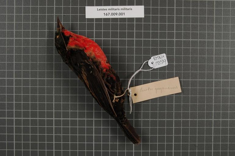| Keywords: Naturalis Biodiversity Center - RMNH.AVES.153539 1 - Leistes militaris militaris (Linnaeus, 1758) - Icteridae - bird skin specimen.jpeg artwork Dimensions artwork Document type Icteridae Leistes Individual count 1 Infraspecific epithet militaris Infraspecific rank Institution Naturalis Kind of unit artwork Kind of unit specimen skin Life stage Br Guyana Berbice New Amsterdam Medium artwork Nomenclatural code Occurrence ID page Other fields Other versions artwork Permission license Naturalis donation CC-0 Publication location Scientific name Leistes militaris militaris Linnaeus 1758 Scientific name authorship Linnaeus 1758 Source url http //bioportal naturalis nl Specific epithet militaris State or province Berbice Subject keywords artwork Subject keywords publication Title artwork Title publication Type status Uploaded with GWToolset Naturalis_Biodiversity_Center_-_RMNH AVES 153539_1_-_Leistes_militaris_militaris_ Linnaeus _1758 _-_Icteridae_-_bird_skin_specimen http //medialib naturalis nl/file/id/RMNH AVES 153539_1/format/large Media donated by Naturalis Biodiversity Center Songbird specimens at Naturalis Biodiversity Center Sturnella militaris |