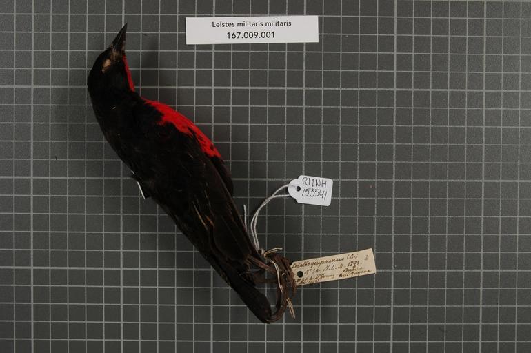 | Keywords: Naturalis Biodiversity Center - RMNH.AVES.153541 1 - Leistes militaris militaris (Linnaeus, 1758) - Icteridae - bird skin specimen.jpeg artwork Dimensions artwork Document type Icteridae Leistes Individual count 1 Infraspecific epithet militaris Infraspecific rank Institution Naturalis Kind of unit artwork Kind of unit specimen skin Life stage Brit Guyana Berbice Medium artwork Nomenclatural code Occurrence ID page Other fields Other versions artwork Permission license Naturalis donation CC-0 Publication location Scientific name Leistes militaris militaris Linnaeus 1758 Scientific name authorship Linnaeus 1758 male Source url http //bioportal naturalis nl Specific epithet militaris State or province Subject keywords artwork Subject keywords publication Title artwork Title publication Type status Uploaded with GWToolset Naturalis_Biodiversity_Center_-_RMNH AVES 153541_1_-_Leistes_militaris_militaris_ Linnaeus _1758 _-_Icteridae_-_bird_skin_specimen http //medialib naturalis nl/file/id/RMNH AVES 153541_1/format/large Media donated by Naturalis Biodiversity Center Songbird specimens at Naturalis Biodiversity Center Sturnella militaris |
