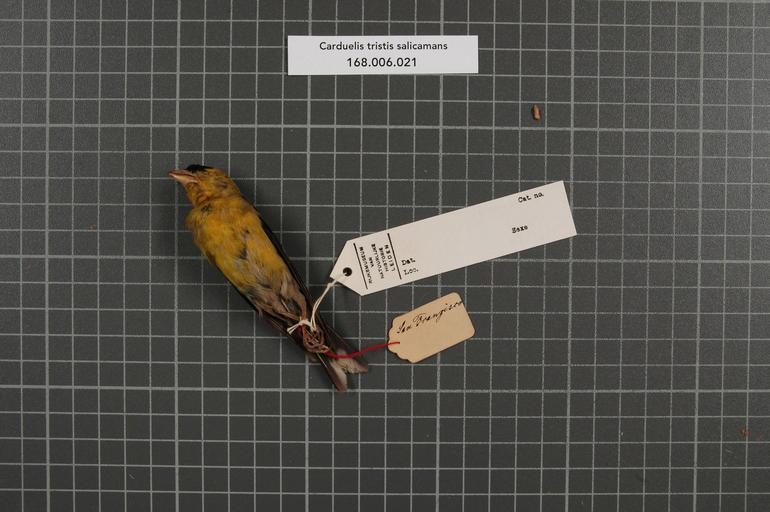 | Keywords: Naturalis Biodiversity Center - RMNH.AVES.154006 2 - Carduelis tristis salicamans (Grinnell,1897) - Fringillidae - bird skin specimen.jpeg artwork Dimensions artwork Document type Fringillidae Carduelis Individual count 1 Infraspecific epithet salicamans Infraspecific rank Institution Naturalis Kind of unit artwork Kind of unit specimen skin Life stage Californien San Francisco Medium artwork Nomenclatural code Occurrence ID page Other fields Other versions artwork Permission license Naturalis donation CC-0 Publication location Scientific name Carduelis tristis salicamans Grinnell 1897 Scientific name authorship Grinnell 1897 male Source url http //bioportal naturalis nl Specific epithet tristis State or province Californien Subject keywords artwork Subject keywords publication Title artwork Title publication Type status Uploaded with GWToolset Naturalis_Biodiversity_Center_-_RMNH AVES 154006_2_-_Carduelis_tristis_salicamans_ Grinnell 1897 _-_Fringillidae_-_bird_skin_specimen http //medialib naturalis nl/file/id/RMNH AVES 154006_2/format/large Media donated by Naturalis Biodiversity Center Songbird specimens at Naturalis Biodiversity Center Spinus tristis Carduelis |