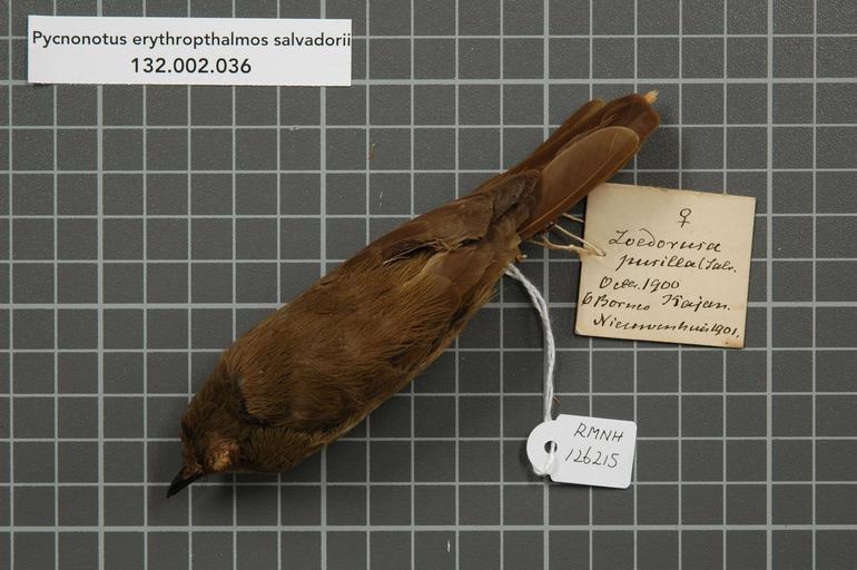 | Keywords: Naturalis Biodiversity Center - RMNH.AVES.126215 1 - Pycnonotus erythropthalmos salvadorii Sharpe, 1874 - Pycnonotidae - bird skin specimen.jpeg artwork Dimensions artwork Document type Pycnonotidae Pycnonotus Individual count 1 Infraspecific epithet salvadorii Infraspecific rank Institution Naturalis Kind of unit artwork Kind of unit specimen skin Life stage Indonesia C Borneo Kajan Medium artwork Nomenclatural code Additional info AF Additional info remark comment recorder F probably is symbol not letter F Occurrence ID page Other fields Other versions artwork Permission license Naturalis donation CC-0 Publication location Scientific name Pycnonotus erythropthalmos salvadorii Sharpe 1874 Scientific name authorship Sharpe 1874 female Source url http //bioportal naturalis nl Specific epithet erythropthalmos State or province C Borneo Subject keywords artwork Subject keywords publication Title artwork Title publication Type status Uploaded with GWToolset Naturalis_Biodiversity_Center_-_RMNH AVES 126215_1_-_Pycnonotus_erythropthalmos_salvadorii_Sharpe _1874_-_Pycnonotidae_-_bird_skin_specimen http //medialib naturalis nl/file/id/RMNH AVES 126215_1/format/large Media donated by Naturalis Biodiversity Center Songbird specimens at Naturalis Biodiversity Center Pycnonotus erythropthalmos |