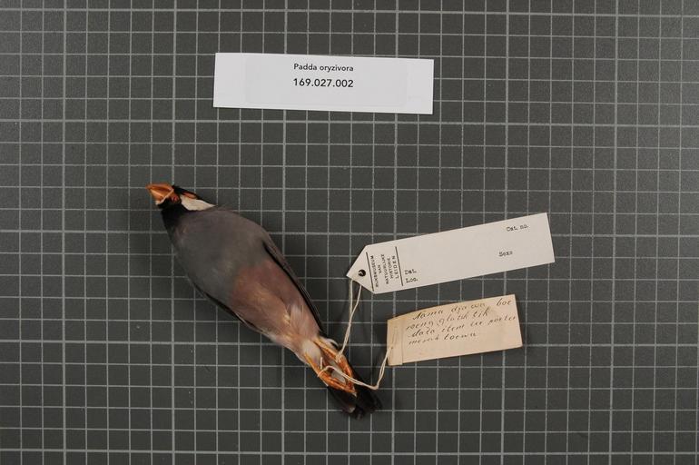 | Keywords: Naturalis Biodiversity Center - RMNH.AVES.161312 2 - Padda oryzivora (Linnaeus, 1758) - Estrildidae - bird skin specimen.jpeg artwork Dimensions artwork Document type Estrildidae Padda Individual count 1 Infraspecific epithet Infraspecific rank Institution Naturalis Kind of unit artwork Kind of unit specimen skin Life stage Indonesia Java Semarang Gedangan teak forest Medium artwork Nomenclatural code ADDITIONAL info remark on label mata item ter poeter merah toewa Occurrence ID page Other fields Other versions artwork Permission license Naturalis donation CC-0 Publication location Scientific name Padda oryzivora Linnaeus 1758 Scientific name authorship Linnaeus 1758 male Source url http //bioportal naturalis nl Specific epithet oryzivora State or province Java Semarang Subject keywords artwork Subject keywords publication Title artwork Title publication Type status Uploaded with GWToolset Naturalis_Biodiversity_Center_-_RMNH AVES 161312_2_-_Padda_oryzivora_ Linnaeus _1758 _-_Estrildidae_-_bird_skin_specimen http //medialib naturalis nl/file/id/RMNH AVES 161312_2/format/large Media donated by Naturalis Biodiversity Center Songbird specimens at Naturalis Biodiversity Center Lonchura oryzivora Lonchura |