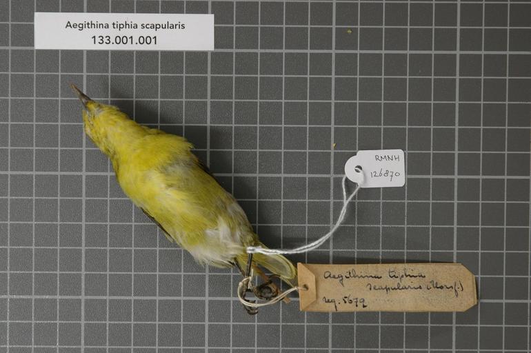 Keywords: Naturalis Biodiversity Center - RMNH.AVES.126870 2 - Aegithina tiphia scapularis (Horsfield, 1821) - Irenidae - bird skin specimen.jpeg artwork Dimensions artwork Document type Irenidae Aegithina Individual count 1 Infraspecific epithet scapularis Infraspecific rank Kind of unit artwork Kind of unit specimen skin Life stage Indonesia Java Buitenzorg Dramaga Medium artwork Nomenclatural code Occurrence ID Other fields Other versions artwork Permission license Naturalis donation CC-0 Publication location Scientific name Aegithina tiphia scapularis Horsfield 1821 Scientific name authorship Horsfield 1821 male Source url Specific epithet tiphia State or province Subject keywords artwork Subject keywords publication Title artwork Title publication Type status Uploaded with GWToolset Naturalis_Biodiversity_Center_-_RMNH AVES 126870_2_-_Aegithina_tiphia_scapularis_ Horsfield _1821 _-_Irenidae_-_bird_skin_specimen http //medialib naturalis nl/file/id/RMNH AVES 126870_2/format/large Media donated by Naturalis Biodiversity Center Songbird specimens at Naturalis Biodiversity Center Aegithina tiphia Aegithina |