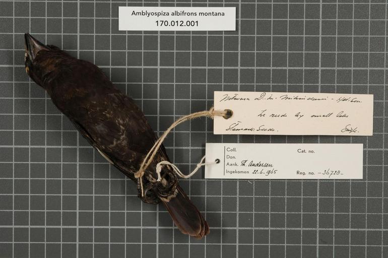 | Keywords: Naturalis Biodiversity Center - RMNH.AVES.36728 2 - Amblyospiza albifrons montana van Someren, 1921 - Ploceidae - bird skin specimen.jpeg artwork Dimensions artwork Document type Ploceidae Amblyospiza Individual count 1 Infraspecific epithet montana Infraspecific rank Institution Naturalis Kind of unit artwork Kind of unit specimen skin Life stage Tanzania Mtwara Distr Mikindani Medium artwork Nomenclatural code Occurrence ID page Other fields Other versions artwork Permission license Naturalis donation CC-0 Publication location Scientific name Amblyospiza albifrons montana van Someren 1921 Scientific name authorship van Someren 1921 male Source url http //bioportal naturalis nl Specific epithet albifrons State or province Mtwara Distr Subject keywords artwork Subject keywords publication Title artwork Title publication Type status Uploaded with GWToolset Naturalis_Biodiversity_Center_-_RMNH AVES 36728_2_-_Amblyospiza_albifrons_montana_van_Someren _1921_-_Ploceidae_-_bird_skin_specimen http //medialib naturalis nl/file/id/RMNH AVES 36728_2/format/large Media donated by Naturalis Biodiversity Center Songbird specimens at Naturalis Biodiversity Center Amblyospiza albifrons Amblyospiza |