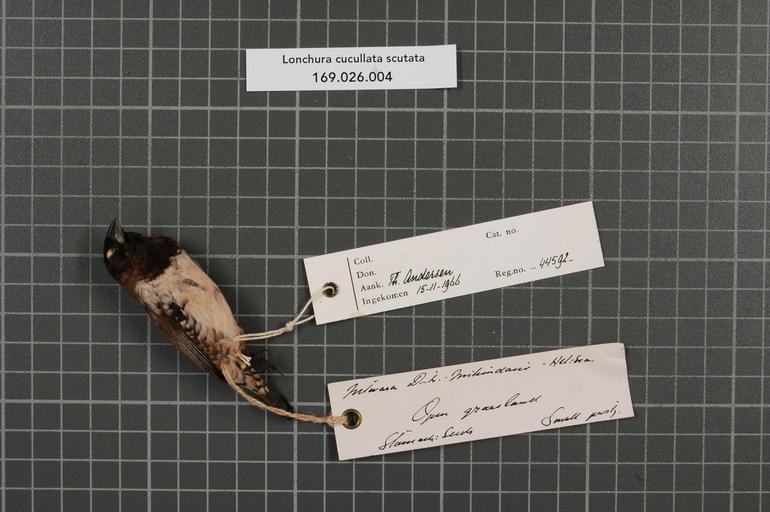 | Keywords: Naturalis Biodiversity Center - RMNH.AVES.44592 1 - Lonchura cucullata scutata (Heuglin, 1863) - Estrildidae - bird skin specimen.jpeg artwork Dimensions artwork Document type Estrildidae Lonchura Individual count 1 Infraspecific epithet scutata Infraspecific rank Institution Naturalis Kind of unit artwork Kind of unit specimen skin Life stage Tanzania Mtwara Distr Mikindani Medium artwork Nomenclatural code Occurrence ID page Other fields Other versions artwork Permission license Naturalis donation CC-0 Publication location Scientific name Lonchura cucullata scutata Heuglin 1863 Scientific name authorship Heuglin 1863 male Source url http //bioportal naturalis nl Specific epithet cucullata State or province Mtwara Distr Subject keywords artwork Subject keywords publication Title artwork Title publication Type status Uploaded with GWToolset Naturalis_Biodiversity_Center_-_RMNH AVES 44592_1_-_Lonchura_cucullata_scutata_ Heuglin _1863 _-_Estrildidae_-_bird_skin_specimen http //medialib naturalis nl/file/id/RMNH AVES 44592_1/format/large Media donated by Naturalis Biodiversity Center Songbird specimens at Naturalis Biodiversity Center Lonchura cucullata Lonchura |
