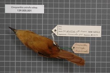 Keywords: Naturalis Biodiversity Center - RMNH.AVES.128603 2 - Cinnycerthia unirufa subsp. - Troglodytidae - bird skin specimen.jpeg artwork Dimensions artwork Document type Troglodytidae Cinnycerthia Individual count 1 Infraspecific epithet subsp Infraspecific rank Institution Naturalis Kind of unit artwork Kind of unit specimen skin Life stage Medium artwork Nomenclatural code Country remark Ecuador crossed out on original label Sex remark Crossed out on original label Occurrence ID page Other fields Other versions artwork Permission license Naturalis donation CC-0 Publication location Scientific name Cinnycerthia unirufa subsp Scientific name authorship male Source url http //bioportal naturalis nl Specific epithet unirufa State or province Subject keywords artwork Subject keywords publication Title artwork Title publication Type status Uploaded with GWToolset Naturalis_Biodiversity_Center_-_RMNH AVES 128603_2_-_Cinnycerthia_unirufa_subsp _-_Troglodytidae_-_bird_skin_specimen http //medialib naturalis nl/file/id/RMNH AVES 128603_2/format/large Media donated by Naturalis Biodiversity Center Songbird specimens at Naturalis Biodiversity Center Cinnycerthia unirufa Cinnycerthia |