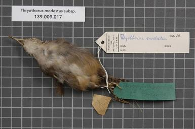 Keywords: Naturalis Biodiversity Center - RMNH.AVES.128629 1 - Thryothorus modestus subsp. - Troglodytidae - bird skin specimen.jpeg artwork Dimensions artwork Document type Troglodytidae Thryothorus Individual count 1 Infraspecific epithet subsp Infraspecific rank Institution Naturalis Kind of unit artwork Kind of unit specimen skin Life stage Medium artwork Nomenclatural code Additional info H Country remark On Schlüter label Amerika Sex remark On Schlüter label female Occurrence ID page Other fields Other versions artwork Permission license Naturalis donation CC-0 Publication location Scientific name Thryothorus modestus subsp Scientific name authorship female Source url http //bioportal naturalis nl Specific epithet modestus State or province Subject keywords artwork Subject keywords publication Title artwork Title publication Type status Uploaded with GWToolset Naturalis_Biodiversity_Center_-_RMNH AVES 128629_1_-_Thryothorus_modestus_subsp _-_Troglodytidae_-_bird_skin_specimen http //medialib naturalis nl/file/id/RMNH AVES 128629_1/format/large Media donated by Naturalis Biodiversity Center Songbird specimens at Naturalis Biodiversity Center Thryothorus modestus Thryothorus |
