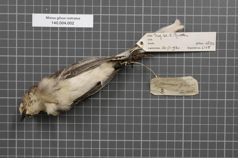 Keywords: Naturalis Biodiversity Center - RMNH.AVES.128733 2 - Mimus gilvus rostratus Ridgway, 1884 - Mimidae - bird skin specimen.jpeg artwork Dimensions artwork Document type Mimidae Mimus Individual count 1 Infraspecific epithet rostratus Infraspecific rank Institution Naturalis Kind of unit artwork Kind of unit specimen skin Life stage Medium artwork Nomenclatural code Region remark on field label Benedenwindsche-Eil Occurrence ID page Other fields Other versions artwork Permission license Naturalis donation CC-0 Publication location Scientific name Mimus gilvus rostratus Ridgway 1884 Scientific name authorship Ridgway 1884 male Source url http //bioportal naturalis nl Specific epithet gilvus State or province Bonaire Subject keywords artwork Subject keywords publication Title artwork Title publication Type status Uploaded with GWToolset Naturalis_Biodiversity_Center_-_RMNH AVES 128733_2_-_Mimus_gilvus_rostratus_Ridgway _1884_-_Mimidae_-_bird_skin_specimen http //medialib naturalis nl/file/id/RMNH AVES 128733_2/format/large Media donated by Naturalis Biodiversity Center Songbird specimens at Naturalis Biodiversity Center Mimus gilvus museum specimens |