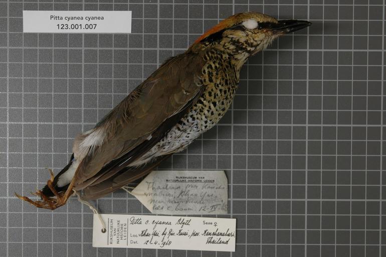 Keywords: Naturalis Biodiversity Center - RMNH.AVES.53529 1 - Pitta cyanea cyanea Blyth, 1843 - Pittidae - bird skin specimen.jpeg artwork Dimensions artwork Document type Pittidae Pitta Individual count 1 Infraspecific epithet cyanea Infraspecific rank Institution Naturalis Kind of unit artwork Kind of unit specimen skin Life stage Thailand Kanchanaburi Khao Yai near river Kwai Medium artwork Nomenclatural code Occurrence ID page Other fields Other versions artwork Permission license Naturalis donation CC-0 Publication location Scientific name Pitta cyanea cyanea Blyth 1843 Scientific name authorship Blyth 1843 female Source url http //bioportal naturalis nl Specific epithet cyanea State or province Kanchanaburi Subject keywords artwork Subject keywords publication Title artwork Title publication Type status Uploaded with GWToolset Naturalis_Biodiversity_Center_-_RMNH AVES 53529_1_-_Pitta_cyanea_cyanea_Blyth _1843_-_Pittidae_-_bird_skin_specimen http //medialib naturalis nl/file/id/RMNH AVES 53529_1/format/large Media donated by Naturalis Biodiversity Center Songbird specimens at Naturalis Biodiversity Center Pitta cyanea Pitta |