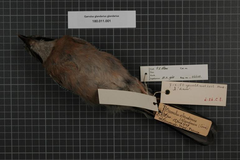 | Keywords: Naturalis Biodiversity Center - RMNH.AVES.56643 2 - Garrulus glandarius glandarius (Linnaeus, 1758) - Corvidae - bird skin specimen.jpeg artwork Dimensions artwork Document type Corvidae Garrulus Individual count 1 Infraspecific epithet glandarius Infraspecific rank Institution Naturalis Kind of unit artwork Kind of unit specimen skin Life stage juvenile France Vogezen Remomeix par Saint DiƩ Medium artwork Nomenclatural code Occurrence ID page Other fields Other versions artwork Permission license Naturalis donation CC-0 Publication location Scientific name Garrulus glandarius glandarius Linnaeus 1758 Scientific name authorship Linnaeus 1758 male Source url http //bioportal naturalis nl Specific epithet glandarius State or province Vogezen Subject keywords artwork Subject keywords publication Title artwork Title publication Type status Uploaded with GWToolset Naturalis_Biodiversity_Center_-_RMNH AVES 56643_2_-_Garrulus_glandarius_glandarius_ Linnaeus _1758 _-_Corvidae_-_bird_skin_specimen http //medialib naturalis nl/file/id/RMNH AVES 56643_2/format/large Media donated by Naturalis Biodiversity Center Songbird specimens at Naturalis Biodiversity Center Garrulus glandarius Garrulus |