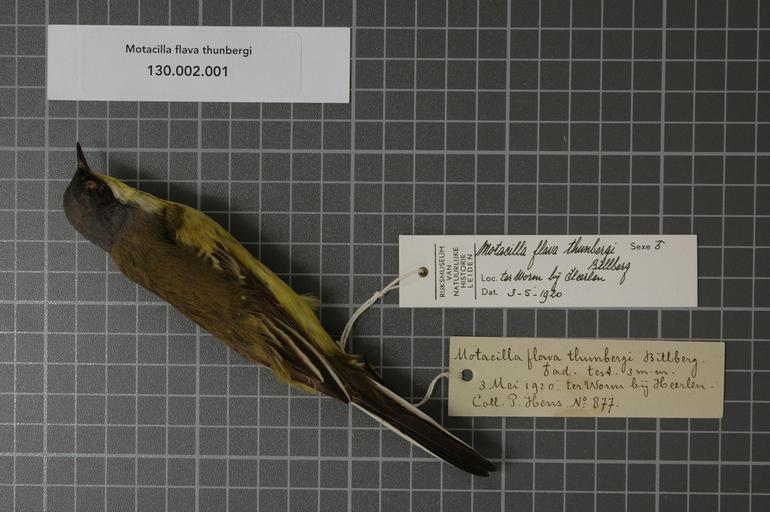 | Keywords: Naturalis Biodiversity Center - RMNH.AVES.57538 1 - Motacilla flava thunbergi Billberg, 1828 - Motacillidae - bird skin specimen.jpeg artwork Dimensions artwork Document type Motacillidae Motacilla Individual count 1 Infraspecific epithet thunbergi Infraspecific rank Institution Naturalis Kind of unit artwork Kind of unit specimen skin Life stage adult ter Worm bij Heerlen Medium artwork Nomenclatural code Occurrence ID page Other fields Other versions artwork Permission license Naturalis donation CC-0 Publication location Scientific name Motacilla flava thunbergi Billberg 1828 Scientific name authorship Billberg 1828 male Source url http //bioportal naturalis nl Specific epithet flava State or province Subject keywords artwork Subject keywords publication Title artwork Title publication Type status Uploaded with GWToolset Naturalis_Biodiversity_Center_-_RMNH AVES 57538_1_-_Motacilla_flava_thunbergi_Billberg _1828_-_Motacillidae_-_bird_skin_specimen http //medialib naturalis nl/file/id/RMNH AVES 57538_1/format/large Media donated by Naturalis Biodiversity Center Songbird specimens at Naturalis Biodiversity Center Motacilla flava Motacilla |