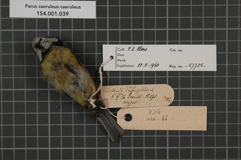 Keywords: Naturalis Biodiversity Center - RMNH.AVES.57725 2 - Parus caeruleus caeruleus Linnaeus, 1758 - Paridae - bird skin specimen.jpeg artwork Dimensions artwork Document type Paridae Parus Individual count 1 Infraspecific epithet caeruleus Infraspecific rank Institution Naturalis Kind of unit artwork Kind of unit specimen skin Life stage Sweden Västergötland Tofhult Medium artwork Nomenclatural code Bodily condition mAger Country remark ZwedenLocality remark Västergotland Occurrence ID page Other fields Other versions artwork Permission license Naturalis donation CC-0 Publication location Scientific name Parus caeruleus caeruleus Linnaeus 1758 Scientific name authorship Linnaeus 1758 female Source url http //bioportal naturalis nl Specific epithet caeruleus State or province Västergötland Subject keywords artwork Subject keywords publication Title artwork Title publication Type status Uploaded with GWToolset Naturalis_Biodiversity_Center_-_RMNH AVES 57725_2_-_Parus_caeruleus_caeruleus_Linnaeus _1758_-_Paridae_-_bird_skin_specimen http //medialib naturalis nl/file/id/RMNH AVES 57725_2/format/large Media donated by Naturalis Biodiversity Center Songbird specimens at Naturalis Biodiversity Center Cyanistes caeruleus Parus