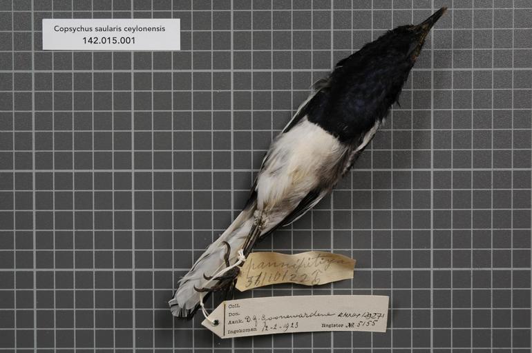Keywords: Naturalis Biodiversity Center - RMNH.AVES.129271 2 - Copsychus saularis ceylonensis Sclater, 1861 - Turdidae - bird skin specimen.jpeg artwork Dimensions artwork Document type Turdidae Copsychus Individual count 1 Infraspecific epithet ceylonensis Infraspecific rank Institution Naturalis Kind of unit artwork Kind of unit specimen skin Life stage Medium artwork Nomenclatural code Occurrence ID page Other fields Other versions artwork Permission license Naturalis donation CC-0 Publication location Scientific name Copsychus saularis ceylonensis Sclater 1861 Scientific name authorship Sclater 1861 male Source url http //bioportal naturalis nl Specific epithet saularis State or province Subject keywords artwork Subject keywords publication Title artwork Title publication Type status Uploaded with GWToolset Naturalis_Biodiversity_Center_-_RMNH AVES 129271_2_-_Copsychus_saularis_ceylonensis_Sclater _1861_-_Turdidae_-_bird_skin_specimen http //medialib naturalis nl/file/id/RMNH AVES 129271_2/format/large Media donated by Naturalis Biodiversity Center Songbird specimens at Naturalis Biodiversity Center Copsychus saularis museum specimens |