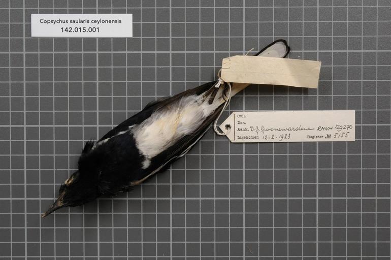 Keywords: Naturalis Biodiversity Center - RMNH.AVES.129270 2 - Copsychus saularis ceylonensis Sclater, 1861 - Turdidae - bird skin specimen.jpeg artwork Dimensions artwork Document type Turdidae Copsychus Individual count 1 Infraspecific epithet ceylonensis Infraspecific rank Institution Naturalis Kind of unit artwork Kind of unit specimen skin Life stage Medium artwork Nomenclatural code Occurrence ID page Other fields Other versions artwork Permission license Naturalis donation CC-0 Publication location Scientific name Copsychus saularis ceylonensis Sclater 1861 Scientific name authorship Sclater 1861 male Source url http //bioportal naturalis nl Specific epithet saularis State or province Subject keywords artwork Subject keywords publication Title artwork Title publication Type status Uploaded with GWToolset Naturalis_Biodiversity_Center_-_RMNH AVES 129270_2_-_Copsychus_saularis_ceylonensis_Sclater _1861_-_Turdidae_-_bird_skin_specimen http //medialib naturalis nl/file/id/RMNH AVES 129270_2/format/large Media donated by Naturalis Biodiversity Center Songbird specimens at Naturalis Biodiversity Center Copsychus saularis museum specimens |
