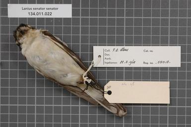 | Keywords: Naturalis Biodiversity Center - RMNH.AVES.58018 2 - Lanius senator senator Linnaeus, 1758 - Laniidae - bird skin specimen.jpeg artwork Dimensions artwork Document type Laniidae Lanius Individual count 1 Infraspecific epithet senator Infraspecific rank Institution Naturalis Kind of unit artwork Kind of unit specimen skin Life stage Portugal bij Setubal Z van Lissabon Medium artwork Nomenclatural code Sex remark On Hens label 'female' Occurrence ID page Other fields Other versions artwork Permission license Naturalis donation CC-0 Publication location Scientific name Lanius senator senator Linnaeus 1758 Scientific name authorship Linnaeus 1758 female Source url http //bioportal naturalis nl Specific epithet senator State or province Subject keywords artwork Subject keywords publication Title artwork Title publication Type status Uploaded with GWToolset Naturalis_Biodiversity_Center_-_RMNH AVES 58018_2_-_Lanius_senator_senator_Linnaeus _1758_-_Laniidae_-_bird_skin_specimen http //medialib naturalis nl/file/id/RMNH AVES 58018_2/format/large Media donated by Naturalis Biodiversity Center Songbird specimens at Naturalis Biodiversity Center Lanius senator Lanius |