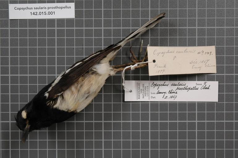 Keywords: Naturalis Biodiversity Center - RMNH.AVES.129290 1 - Copsychus saularis prosthopellus Oberholser, 1923 - Turdidae - bird skin specimen.jpeg artwork Dimensions artwork Document type Turdidae Copsychus Individual count 1 Infraspecific epithet prosthopellus Infraspecific rank Institution Naturalis Kind of unit artwork Kind of unit specimen skin Life stage Medium artwork Nomenclatural code Occurrence ID page Other fields Other versions artwork Permission license Naturalis donation CC-0 Publication location Scientific name Copsychus saularis prosthopellus Oberholser 1923 Scientific name authorship Oberholser 1923 male Source url http //bioportal naturalis nl Specific epithet saularis State or province Amoy Subject keywords artwork Subject keywords publication Title artwork Title publication Type status Uploaded with GWToolset Naturalis_Biodiversity_Center_-_RMNH AVES 129290_1_-_Copsychus_saularis_prosthopellus_Oberholser _1923_-_Turdidae_-_bird_skin_specimen http //medialib naturalis nl/file/id/RMNH AVES 129290_1/format/large Media donated by Naturalis Biodiversity Center Songbird specimens at Naturalis Biodiversity Center Copsychus saularis museum specimens |