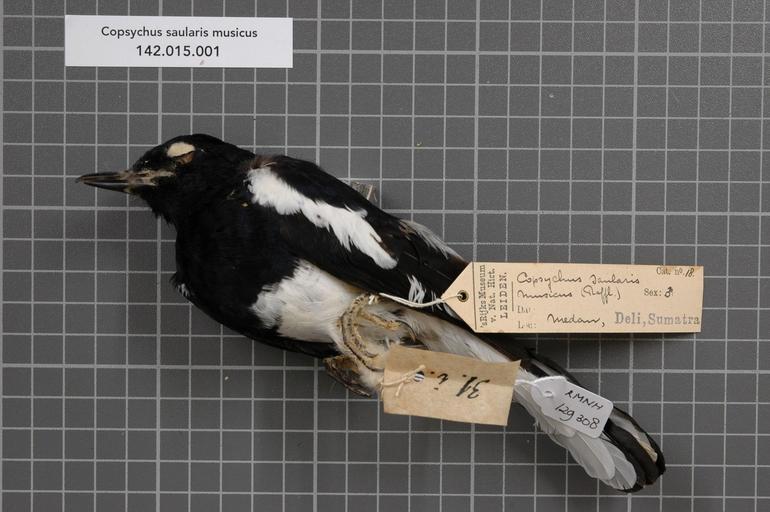 Keywords: Naturalis Biodiversity Center - RMNH.AVES.129308 1 - Copsychus saularis musicus (Raffles, 1822) - Turdidae - bird skin specimen.jpeg artwork Dimensions artwork Document type Turdidae Copsychus Individual count 1 Infraspecific epithet musicus Infraspecific rank Institution Naturalis Kind of unit artwork Kind of unit specimen skin Life stage Medium artwork Nomenclatural code Occurrence ID page Other fields Other versions artwork Permission license Naturalis donation CC-0 Publication location Scientific name Copsychus saularis musicus Raffles 1822 Scientific name authorship Raffles 1822 male Source url http //bioportal naturalis nl Specific epithet saularis State or province Sumatra Deli Subject keywords artwork Subject keywords publication Title artwork Title publication Type status Uploaded with GWToolset Naturalis_Biodiversity_Center_-_RMNH AVES 129308_1_-_Copsychus_saularis_musicus_ Raffles _1822 _-_Turdidae_-_bird_skin_specimen http //medialib naturalis nl/file/id/RMNH AVES 129308_1/format/large Media donated by Naturalis Biodiversity Center Songbird specimens at Naturalis Biodiversity Center Copsychus saularis museum specimens |