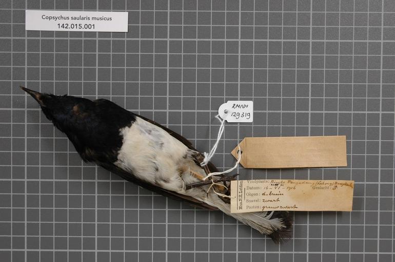 Keywords: Naturalis Biodiversity Center - RMNH.AVES.129319 2 - Copsychus saularis musicus (Raffles, 1822) - Turdidae - bird skin specimen.jpeg artwork Dimensions artwork Document type Turdidae Copsychus Individual count 1 Infraspecific epithet musicus Infraspecific rank Institution Naturalis Kind of unit artwork Kind of unit specimen skin Life stage Medium artwork Nomenclatural code Occurrence ID page Other fields Other versions artwork Permission license Naturalis donation CC-0 Publication location Scientific name Copsychus saularis musicus Raffles 1822 Scientific name authorship Raffles 1822 male Source url http //bioportal naturalis nl Specific epithet saularis State or province Bengkulen Subject keywords artwork Subject keywords publication Title artwork Title publication Type status Uploaded with GWToolset Naturalis_Biodiversity_Center_-_RMNH AVES 129319_2_-_Copsychus_saularis_musicus_ Raffles _1822 _-_Turdidae_-_bird_skin_specimen http //medialib naturalis nl/file/id/RMNH AVES 129319_2/format/large Media donated by Naturalis Biodiversity Center Songbird specimens at Naturalis Biodiversity Center Copsychus saularis museum specimens |