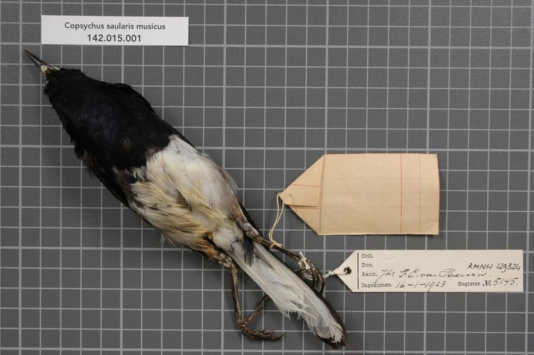 Keywords: Naturalis Biodiversity Center - RMNH.AVES.129324 2 - Copsychus saularis musicus (Raffles, 1822) - Turdidae - bird skin specimen.jpeg artwork Dimensions artwork Document type Turdidae Copsychus Individual count 1 Infraspecific epithet musicus Infraspecific rank Institution Naturalis Kind of unit artwork Kind of unit specimen skin Life stage Medium artwork Nomenclatural code Occurrence ID page Other fields Other versions artwork Permission license Naturalis donation CC-0 Publication location Scientific name Copsychus saularis musicus Raffles 1822 Scientific name authorship Raffles 1822 male Source url http //bioportal naturalis nl Specific epithet saularis State or province Sumatra Serdang Subject keywords artwork Subject keywords publication Title artwork Title publication Type status Uploaded with GWToolset Naturalis_Biodiversity_Center_-_RMNH AVES 129324_2_-_Copsychus_saularis_musicus_ Raffles _1822 _-_Turdidae_-_bird_skin_specimen http //medialib naturalis nl/file/id/RMNH AVES 129324_2/format/large Media donated by Naturalis Biodiversity Center Songbird specimens at Naturalis Biodiversity Center Copsychus saularis museum specimens |