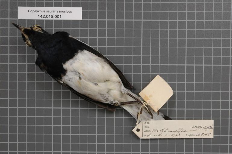 Keywords: Naturalis Biodiversity Center - RMNH.AVES.129326 2 - Copsychus saularis musicus (Raffles, 1822) - Turdidae - bird skin specimen.jpeg artwork Dimensions artwork Document type Turdidae Copsychus Individual count 1 Infraspecific epithet musicus Infraspecific rank Institution Naturalis Kind of unit artwork Kind of unit specimen skin Life stage Medium artwork Nomenclatural code Additional info s o k Occurrence ID page Other fields Other versions artwork Permission license Naturalis donation CC-0 Publication location Scientific name Copsychus saularis musicus Raffles 1822 Scientific name authorship Raffles 1822 male Source url http //bioportal naturalis nl Specific epithet saularis State or province Subject keywords artwork Subject keywords publication Title artwork Title publication Type status Uploaded with GWToolset Naturalis_Biodiversity_Center_-_RMNH AVES 129326_2_-_Copsychus_saularis_musicus_ Raffles _1822 _-_Turdidae_-_bird_skin_specimen http //medialib naturalis nl/file/id/RMNH AVES 129326_2/format/large Media donated by Naturalis Biodiversity Center Songbird specimens at Naturalis Biodiversity Center Copsychus saularis museum specimens |