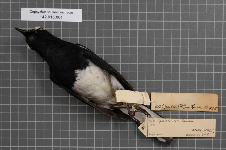 Keywords: Naturalis Biodiversity Center - RMNH.AVES.129337 2 - Copsychus saularis zacnecus Oberholser, 1912 - Turdidae - bird skin specimen.jpeg artwork Dimensions artwork Document type Turdidae Copsychus Individual count 1 Infraspecific epithet zacnecus Infraspecific rank Institution Naturalis Kind of unit artwork Kind of unit specimen skin Life stage Medium artwork Nomenclatural code Occurrence ID page Other fields Other versions artwork Permission license Naturalis donation CC-0 Publication location Scientific name Copsychus saularis zacnecus Oberholser 1912 Scientific name authorship Oberholser 1912 male Source url http //bioportal naturalis nl Specific epithet saularis State or province Simalur Subject keywords artwork Subject keywords publication Title artwork Title publication Type status Uploaded with GWToolset Naturalis_Biodiversity_Center_-_RMNH AVES 129337_2_-_Copsychus_saularis_zacnecus_Oberholser _1912_-_Turdidae_-_bird_skin_specimen http //medialib naturalis nl/file/id/RMNH AVES 129337_2/format/large Media donated by Naturalis Biodiversity Center Songbird specimens at Naturalis Biodiversity Center Copsychus saularis museum specimens |