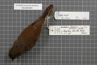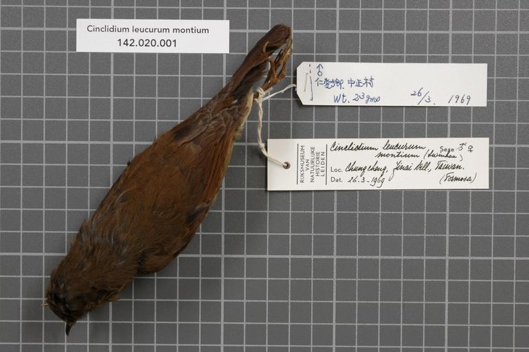 | Keywords: Naturalis Biodiversity Center - RMNH.AVES.59088 1- - Cinclidium leucurum montium (Swinhoe, 1864) - Turdidae - bird skin specimen.jpeg artwork Dimensions artwork Document type Turdidae Cinclidium Individual count 1 Infraspecific epithet montium Infraspecific rank Institution Naturalis Kind of unit artwork Kind of unit specimen skin Life stage Taiwan Jinai Vill Chung Cheng Medium artwork Nomenclatural code General remarks Label Chen also contains some text in Japanese / Tiwanese Country remark RMNH label Taiwan Formosa Sex remark Chen lael maleRMNH label male sign crossed out and replaced by a female sign Occurrence ID page Other fields Other versions artwork Permission license Naturalis donation CC-0 Publication location Scientific name Cinclidium leucurum montium Swinhoe 1864 Scientific name authorship Swinhoe 1864 male Source url http //bioportal naturalis nl Specific epithet leucurum State or province Subject keywords artwork Subject keywords publication Title artwork Title publication Type status Uploaded with GWToolset Naturalis_Biodiversity_Center_-_RMNH AVES 59088_1 _-_Cinclidium_leucurum_montium_ Swinhoe _1864 _-_Turdidae_-_bird_skin_specimen http //medialib naturalis nl/file/id/RMNH AVES 59088_1/format/large Media donated by Naturalis Biodiversity Center Songbird specimens at Naturalis Biodiversity Center Myiomela leucura Cinclidium |