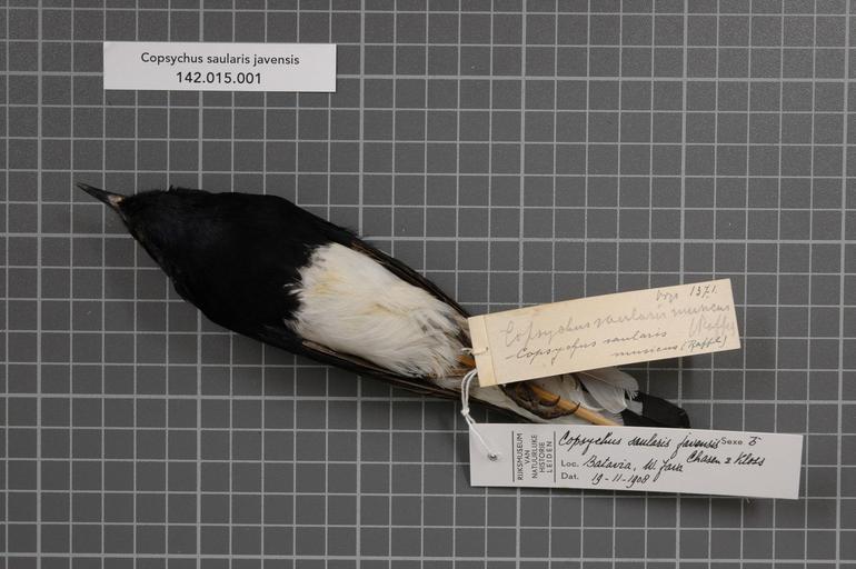 Keywords: Naturalis Biodiversity Center - RMNH.AVES.129384 1 - Copsychus saularis javensis Chasen & Kloss, 1930 - Turdidae - bird skin specimen.jpeg artwork Dimensions artwork Document type Turdidae Copsychus Individual count 1 Infraspecific epithet javensis Infraspecific rank Institution Naturalis Kind of unit artwork Kind of unit specimen skin Life stage Medium artwork Nomenclatural code Occurrence ID page Other fields Other versions artwork Permission license Naturalis donation CC-0 Publication location Scientific name Copsychus saularis javensis Chasen Kloss 1930 Scientific name authorship Chasen Kloss 1930 male Source url http //bioportal naturalis nl Specific epithet saularis State or province W Java Batavia Subject keywords artwork Subject keywords publication Title artwork Title publication Type status Uploaded with GWToolset Naturalis_Biodiversity_Center_-_RMNH AVES 129384_1_-_Copsychus_saularis_javensis_Chasen_ _Kloss _1930_-_Turdidae_-_bird_skin_specimen http //medialib naturalis nl/file/id/RMNH AVES 129384_1/format/large Media donated by Naturalis Biodiversity Center Songbird specimens at Naturalis Biodiversity Center Copsychus saularis museum specimens |
