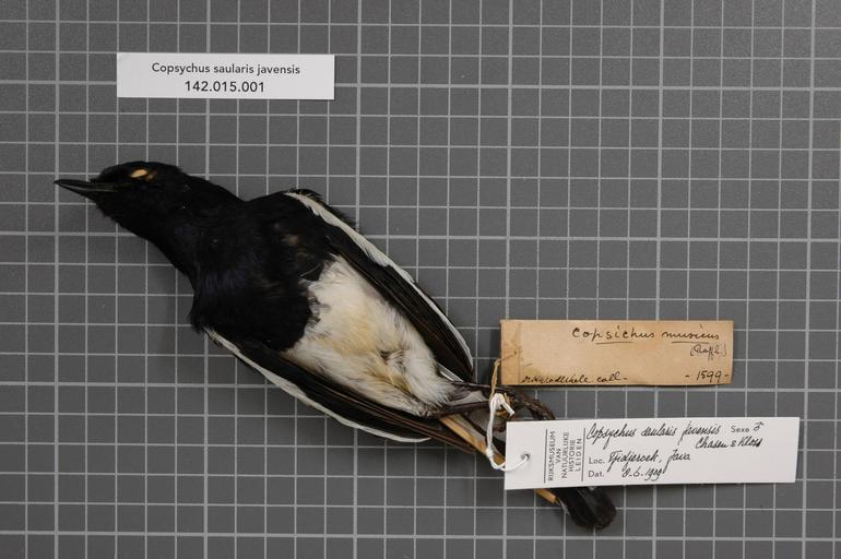 Keywords: Naturalis Biodiversity Center - RMNH.AVES.129388 1 - Copsychus saularis javensis Chasen & Kloss, 1930 - Turdidae - bird skin specimen.jpeg artwork Dimensions artwork Document type Turdidae Copsychus Individual count 1 Infraspecific epithet javensis Infraspecific rank Institution Naturalis Kind of unit artwork Kind of unit specimen skin Life stage Medium artwork Nomenclatural code Occurrence ID page Other fields Other versions artwork Permission license Naturalis donation CC-0 Publication location Scientific name Copsychus saularis javensis Chasen Kloss 1930 Scientific name authorship Chasen Kloss 1930 male Source url http //bioportal naturalis nl Specific epithet saularis State or province Subject keywords artwork Subject keywords publication Title artwork Title publication Type status Uploaded with GWToolset Naturalis_Biodiversity_Center_-_RMNH AVES 129388_1_-_Copsychus_saularis_javensis_Chasen_ _Kloss _1930_-_Turdidae_-_bird_skin_specimen http //medialib naturalis nl/file/id/RMNH AVES 129388_1/format/large Media donated by Naturalis Biodiversity Center Songbird specimens at Naturalis Biodiversity Center Copsychus saularis museum specimens |