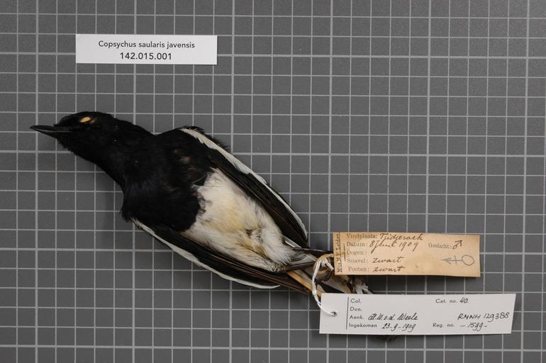 Keywords: Naturalis Biodiversity Center - RMNH.AVES.129388 2 - Copsychus saularis javensis Chasen & Kloss, 1930 - Turdidae - bird skin specimen.jpeg artwork Dimensions artwork Document type Turdidae Copsychus Individual count 1 Infraspecific epithet javensis Infraspecific rank Institution Naturalis Kind of unit artwork Kind of unit specimen skin Life stage Medium artwork Nomenclatural code Occurrence ID page Other fields Other versions artwork Permission license Naturalis donation CC-0 Publication location Scientific name Copsychus saularis javensis Chasen Kloss 1930 Scientific name authorship Chasen Kloss 1930 male Source url http //bioportal naturalis nl Specific epithet saularis State or province Subject keywords artwork Subject keywords publication Title artwork Title publication Type status Uploaded with GWToolset Naturalis_Biodiversity_Center_-_RMNH AVES 129388_2_-_Copsychus_saularis_javensis_Chasen_ _Kloss _1930_-_Turdidae_-_bird_skin_specimen http //medialib naturalis nl/file/id/RMNH AVES 129388_2/format/large Media donated by Naturalis Biodiversity Center Songbird specimens at Naturalis Biodiversity Center Copsychus saularis museum specimens |
