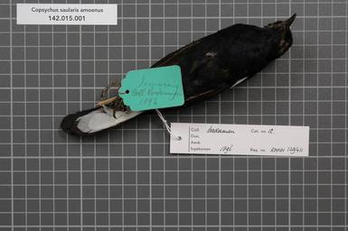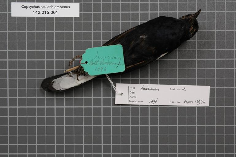Keywords: Naturalis Biodiversity Center - RMNH.AVES.129411 2 - Copsychus saularis amoenus (Horsfield, 1821) - Turdidae - bird skin specimen.jpeg artwork Dimensions artwork Document type Turdidae Copsychus Individual count 1 Infraspecific epithet amoenus Infraspecific rank Institution Naturalis Kind of unit artwork Kind of unit specimen skin Life stage Medium artwork Nomenclatural code Sex remark Vorderman label no information about the SexRMNH label male Occurrence ID page Other fields Other versions artwork Permission license Naturalis donation CC-0 Publication location Scientific name Copsychus saularis amoenus Horsfield 1821 Scientific name authorship Horsfield 1821 male Source url http //bioportal naturalis nl Specific epithet saularis State or province Java Semarang Subject keywords artwork Subject keywords publication Title artwork Title publication Type status Uploaded with GWToolset Naturalis_Biodiversity_Center_-_RMNH AVES 129411_2_-_Copsychus_saularis_amoenus_ Horsfield _1821 _-_Turdidae_-_bird_skin_specimen http //medialib naturalis nl/file/id/RMNH AVES 129411_2/format/large Media donated by Naturalis Biodiversity Center Songbird specimens at Naturalis Biodiversity Center Copsychus saularis museum specimens |