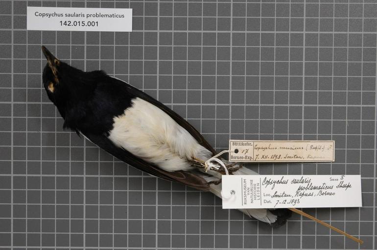 Keywords: Naturalis Biodiversity Center - RMNH.AVES.129436 1 - Copsychus saularis problematicus Sharpe, 1876 - Turdidae - bird skin specimen.jpeg artwork Dimensions artwork Document type Turdidae Copsychus Individual count 1 Infraspecific epithet problematicus Infraspecific rank Institution Naturalis Kind of unit artwork Kind of unit specimen skin Life stage Medium artwork Nomenclatural code Occurrence ID page Other fields Other versions artwork Permission license Naturalis donation CC-0 Publication location Scientific name Copsychus saularis problematicus Sharpe 1876 Scientific name authorship Sharpe 1876 male Source url http //bioportal naturalis nl Specific epithet saularis State or province Borneo Kapuas Subject keywords artwork Subject keywords publication Title artwork Title publication Type status Uploaded with GWToolset Naturalis_Biodiversity_Center_-_RMNH AVES 129436_1_-_Copsychus_saularis_problematicus_Sharpe _1876_-_Turdidae_-_bird_skin_specimen http //medialib naturalis nl/file/id/RMNH AVES 129436_1/format/large Media donated by Naturalis Biodiversity Center Songbird specimens at Naturalis Biodiversity Center Copsychus saularis museum specimens |