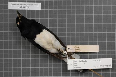 Keywords: Naturalis Biodiversity Center - RMNH.AVES.129436 2 - Copsychus saularis problematicus Sharpe, 1876 - Turdidae - bird skin specimen.jpeg artwork Dimensions artwork Document type Turdidae Copsychus Individual count 1 Infraspecific epithet problematicus Infraspecific rank Institution Naturalis Kind of unit artwork Kind of unit specimen skin Life stage Medium artwork Nomenclatural code Occurrence ID page Other fields Other versions artwork Permission license Naturalis donation CC-0 Publication location Scientific name Copsychus saularis problematicus Sharpe 1876 Scientific name authorship Sharpe 1876 male Source url http //bioportal naturalis nl Specific epithet saularis State or province Borneo Kapuas Subject keywords artwork Subject keywords publication Title artwork Title publication Type status Uploaded with GWToolset Naturalis_Biodiversity_Center_-_RMNH AVES 129436_2_-_Copsychus_saularis_problematicus_Sharpe _1876_-_Turdidae_-_bird_skin_specimen http //medialib naturalis nl/file/id/RMNH AVES 129436_2/format/large Media donated by Naturalis Biodiversity Center Songbird specimens at Naturalis Biodiversity Center Copsychus saularis museum specimens |