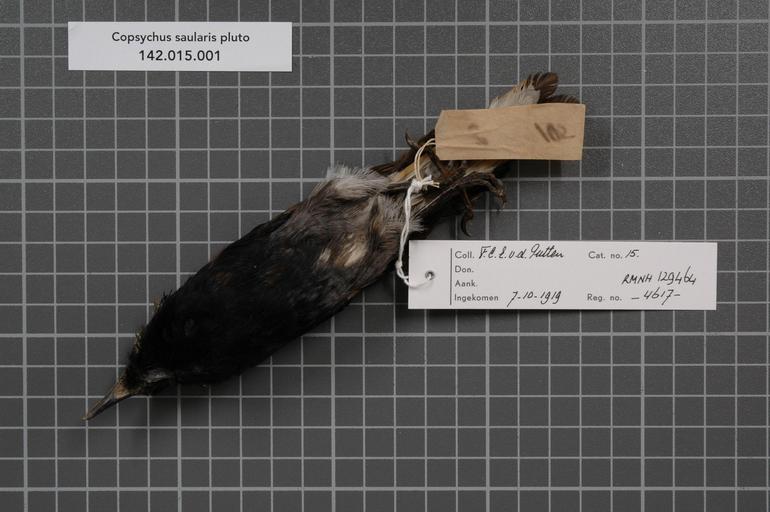 Keywords: Naturalis Biodiversity Center - RMNH.AVES.129464 2 - Copsychus saularis pluto Bonaparte, 1851 - Turdidae - bird skin specimen.jpeg artwork Dimensions artwork Document type Turdidae Copsychus Individual count 1 Infraspecific epithet pluto Infraspecific rank Institution Naturalis Kind of unit artwork Kind of unit specimen skin Life stage Medium artwork Nomenclatural code Occurrence ID page Other fields Other versions artwork Permission license Naturalis donation CC-0 Publication location Scientific name Copsychus saularis pluto Bonaparte 1851 Scientific name authorship Bonaparte 1851 male Source url http //bioportal naturalis nl Specific epithet saularis State or province Z O Borneo Subject keywords artwork Subject keywords publication Title artwork Title publication Type status Uploaded with GWToolset Naturalis_Biodiversity_Center_-_RMNH AVES 129464_2_-_Copsychus_saularis_pluto_Bonaparte _1851_-_Turdidae_-_bird_skin_specimen http //medialib naturalis nl/file/id/RMNH AVES 129464_2/format/large Media donated by Naturalis Biodiversity Center Songbird specimens at Naturalis Biodiversity Center Copsychus saularis museum specimens |