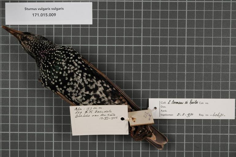 Keywords: Naturalis Biodiversity Center - RMNH.AVES.60671 2 - Sturnus vulgaris vulgaris Linnaeus, 1758 - Sturnidae - bird skin specimen.jpeg artwork Dimensions artwork Document type Sturnidae Sturnus Individual count 1 Infraspecific epithet vulgaris Infraspecific rank Institution Naturalis Kind of unit artwork Kind of unit specimen skin Life stage Netherlands Gelderland Hattem Medium artwork Nomenclatural code Occurrence ID page Other fields Other versions artwork Permission license Naturalis donation CC-0 Publication location Scientific name Sturnus vulgaris vulgaris Linnaeus 1758 Scientific name authorship Linnaeus 1758 male Source url http //bioportal naturalis nl Specific epithet vulgaris State or province Gelderland Subject keywords artwork Subject keywords publication Title artwork Title publication Type status Uploaded with GWToolset Naturalis_Biodiversity_Center_-_RMNH AVES 60671_2_-_Sturnus_vulgaris_vulgaris_Linnaeus _1758_-_Sturnidae_-_bird_skin_specimen http //medialib naturalis nl/file/id/RMNH AVES 60671_2/format/large Media donated by Naturalis Biodiversity Center Songbird specimens at Naturalis Biodiversity Center Sturnus vulgaris museum specimens |