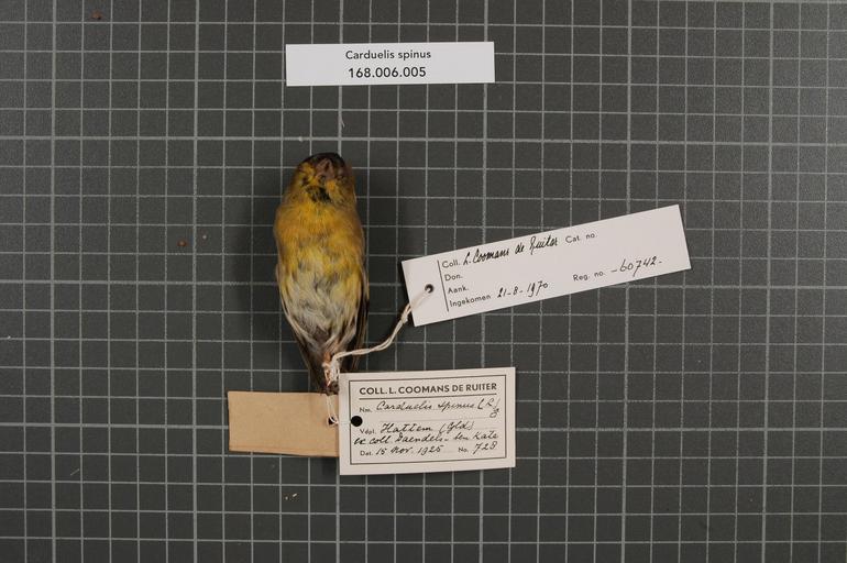 Keywords: Naturalis Biodiversity Center - RMNH.AVES.60742 1 - Carduelis spinus (Linnaeus, 1758) - Fringillidae - bird skin specimen.jpeg artwork Dimensions artwork Document type Fringillidae Carduelis Individual count 1 Infraspecific epithet Infraspecific rank Institution Naturalis Kind of unit artwork Kind of unit specimen skin Life stage Gld Hattem Medium artwork Nomenclatural code ADDITIONAL preparation info W Engels Zwolle Occurrence ID page Other fields Other versions artwork Permission license Naturalis donation CC-0 Publication location Scientific name Carduelis spinus Linnaeus 1758 Scientific name authorship Linnaeus 1758 male Source url http //bioportal naturalis nl Specific epithet spinus State or province Gld Subject keywords artwork Subject keywords publication Title artwork Title publication Type status Uploaded with GWToolset Naturalis_Biodiversity_Center_-_RMNH AVES 60742_1_-_Carduelis_spinus_ Linnaeus _1758 _-_Fringillidae_-_bird_skin_specimen http //medialib naturalis nl/file/id/RMNH AVES 60742_1/format/large Media donated by Naturalis Biodiversity Center Songbird specimens at Naturalis Biodiversity Center Spinus spinus Carduelis |