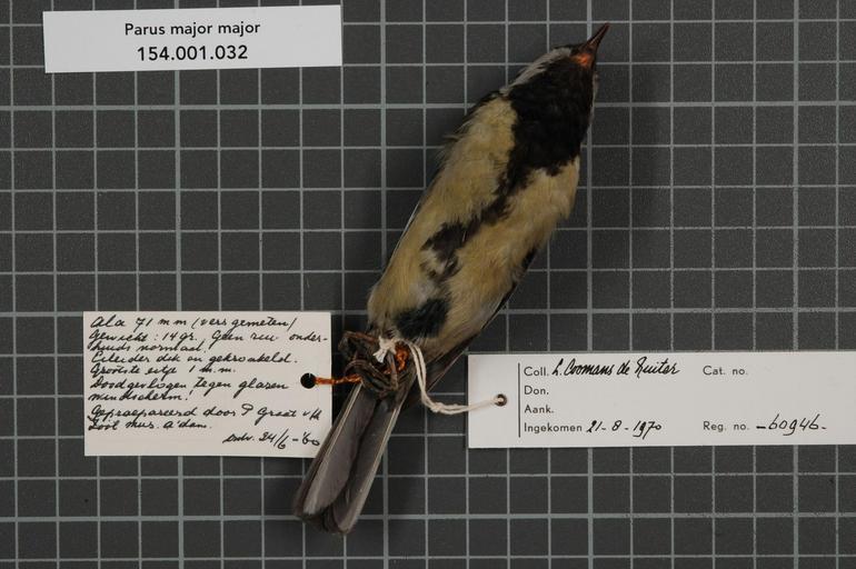 | Keywords: Naturalis Biodiversity Center - RMNH.AVES.60946 2 - Parus major major Linnaeus, 1758 - Paridae - bird skin specimen.jpeg artwork Dimensions artwork Document type Paridae Parus Individual count 1 Infraspecific epithet major Infraspecific rank Institution Naturalis Kind of unit artwork Kind of unit specimen skin Life stage adult Netherlands Zeeland Schouwen Renesse Medium artwork Nomenclatural code Bodily condition onderhuids normaal ADDITIONAL preparation info Gepraepareerd door P Graat v/h Zoöl Mus A'dam ontv 24/6-'60 Occurrence ID page Other fields Other versions artwork Permission license Naturalis donation CC-0 Publication location Scientific name Parus major major Linnaeus 1758 Scientific name authorship Linnaeus 1758 female Source url http //bioportal naturalis nl Specific epithet major State or province Zeeland Schouwen Subject keywords artwork Subject keywords publication Title artwork Title publication Type status Uploaded with GWToolset Naturalis_Biodiversity_Center_-_RMNH AVES 60946_2_-_Parus_major_major_Linnaeus _1758_-_Paridae_-_bird_skin_specimen http //medialib naturalis nl/file/id/RMNH AVES 60946_2/format/large Media donated by Naturalis Biodiversity Center Songbird specimens at Naturalis Biodiversity Center Parus major Parus |