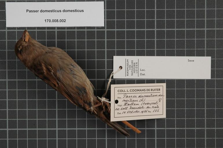View Original:Naturalis Biodiversity Center - RMNH.AVES.61381 1 - Passer domesticus domesticus (Linnaeus, 1758) - Ploceidae - bird skin specimen.jpeg (1920x1277)