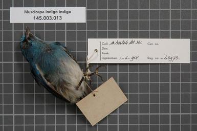 Keywords: Naturalis Biodiversity Center - RMNH.AVES.63973 2 - Muscicapa indigo indigo Horsfield, 1821 - Muscicapidae - bird skin specimen.jpeg artwork Dimensions artwork Document type Muscicapidae Muscicapa Individual count 1 Infraspecific epithet indigo Infraspecific rank Institution Naturalis Kind of unit artwork Kind of unit specimen skin Life stage Indonesia Java Preanger Pangerango Medium artwork Nomenclatural code ADDITIONAL info Ox Occurrence ID page Other fields Other versions artwork Permission license Naturalis donation CC-0 Publication location Scientific name Muscicapa indigo indigo Horsfield 1821 Scientific name authorship Horsfield 1821 female Source url http //bioportal naturalis nl Specific epithet indigo State or province Java Preanger Subject keywords artwork Subject keywords publication Title artwork Title publication Type status Uploaded with GWToolset Naturalis_Biodiversity_Center_-_RMNH AVES 63973_2_-_Muscicapa_indigo_indigo_Horsfield _1821_-_Muscicapidae_-_bird_skin_specimen http //medialib naturalis nl/file/id/RMNH AVES 63973_2/format/large Media donated by Naturalis Biodiversity Center Songbird specimens at Naturalis Biodiversity Center Eumyias indigo museum specimens
