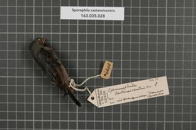 View Original:Naturalis Biodiversity Center - RMNH.AVES.6640 1 - Sporophila castaneiventris Cabanis, 1849 - Emberizidae - bird skin specimen.jpeg (1920x1277)