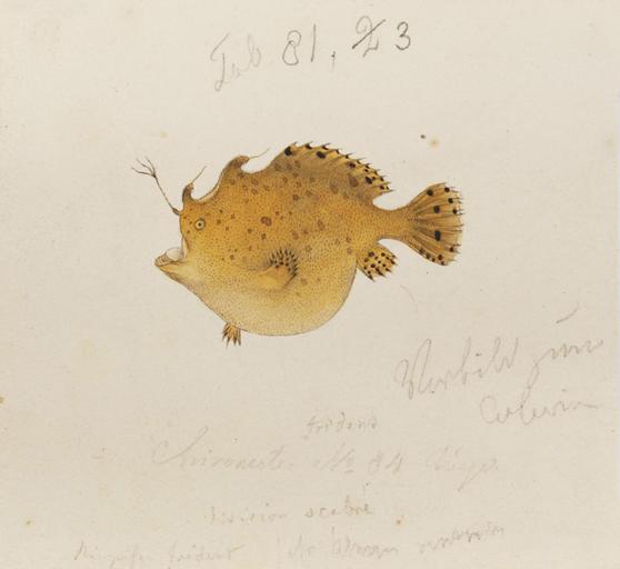 Keywords: Naturalis Biodiversity Center - RMNH.ART.859 - Antennarius tridens (Temminck and Schlegel) - Kawahara Keiga - 1823 - 1829 - Siebold Collection - pencil drawing - water colour.jpeg Biohist Creator Kawahara Keiga Author artwork Author publication Basis of record drawing/water colour Catalog number RMNH ART 859 Collection code Siebold collection Collection date Japan Date artwork artwork Dimensions artwork min 9 x 12 cm max 34 x 50 cm Document type Antennarius Individual count Infraspecific epithet Infraspecific rank Institution Naturalis Kind of unit artwork Kind of unit specimen Life stage Nagasaki Medium artwork pencil drawing watercolour paper Nomenclatural code Antennarius tridens Accepted name Antennarius striatus Shaw 1794 http //www marinespecies org/aphia php p taxdetails id 301309 WoRMS 301309 Occurrence ID page Other fields Other versions artwork Permission license Naturalis donation PD-Art-100 Publication location Scientific name Antennarius tridens Temminck and Schlegel Scientific name authorship Temminck and Schlegel Source url Specific epithet tridens State or province Subject keywords artwork Subject keywords publication Title artwork Title publication Type status Uploaded with GWToolset Naturalis_Biodiversity_Center_-_RMNH ART 859_-_Antennarius_tridens_ Temminck_and_Schlegel _-_Kawahara_Keiga_-_1823_-_1829_-_Siebold_Collection_-_pencil_drawing_-_water_colour http //medialib naturalis nl/file/id/RMNH ART 859/format/large Media donated by Naturalis Biodiversity Center Kawahara Collection at Naturalis Biodiversity Center Antennarius striatus |