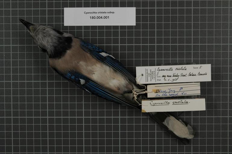 Keywords: Naturalis Biodiversity Center - RMNH.AVES.68132 1 - Cyanocitta cristata subsp. - Corvidae - bird skin specimen.jpeg artwork Dimensions artwork Document type Corvidae Cyanocitta Individual count 1 Infraspecific epithet subsp Infraspecific rank Institution Naturalis Kind of unit artwork Kind of unit specimen skin Life stage Canada Ontario on the road to Turkey Point Medium artwork Nomenclatural code ADDITIONAL info remark difficult to read not sure Occurrence ID page Other fields Other versions artwork Permission license Naturalis donation CC-0 Publication location Scientific name Cyanocitta cristata subsp Scientific name authorship male Source url http //bioportal naturalis nl Specific epithet cristata State or province Ontario Subject keywords artwork Subject keywords publication Title artwork Title publication Type status Uploaded with GWToolset Naturalis_Biodiversity_Center_-_RMNH AVES 68132_1_-_Cyanocitta_cristata_subsp _-_Corvidae_-_bird_skin_specimen http //medialib naturalis nl/file/id/RMNH AVES 68132_1/format/large Media donated by Naturalis Biodiversity Center Songbird specimens at Naturalis Biodiversity Center Cyanocitta cristata museum specimens |
