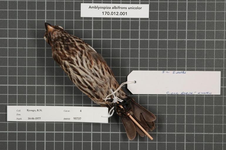 | Keywords: Naturalis Biodiversity Center - RMNH.AVES.95737 2 - Amblyospiza albifrons unicolor (Fischer and Reichenow, 1878) - Ploceidae - bird skin specimen.jpeg artwork Dimensions artwork Document type Ploceidae Amblyospiza Individual count 1 Infraspecific epithet unicolor Infraspecific rank Institution Naturalis Kind of unit artwork Kind of unit specimen skin Life stage Kenya Coast Kwale Shimba Hills Medium artwork Nomenclatural code Occurrence ID page Other fields Other versions artwork Permission license Naturalis donation CC-0 Publication location Scientific name Amblyospiza albifrons unicolor Fischer and Reichenow 1878 Scientific name authorship Fischer and Reichenow 1878 male Source url http //bioportal naturalis nl Specific epithet albifrons State or province Coast Kwale Shimba Hills Subject keywords artwork Subject keywords publication Title artwork Title publication Type status Uploaded with GWToolset Naturalis_Biodiversity_Center_-_RMNH AVES 95737_2_-_Amblyospiza_albifrons_unicolor_ Fischer_and_Reichenow _1878 _-_Ploceidae_-_bird_skin_specimen http //medialib naturalis nl/file/id/RMNH AVES 95737_2/format/large Media donated by Naturalis Biodiversity Center Songbird specimens at Naturalis Biodiversity Center Amblyospiza albifrons museum specimens |