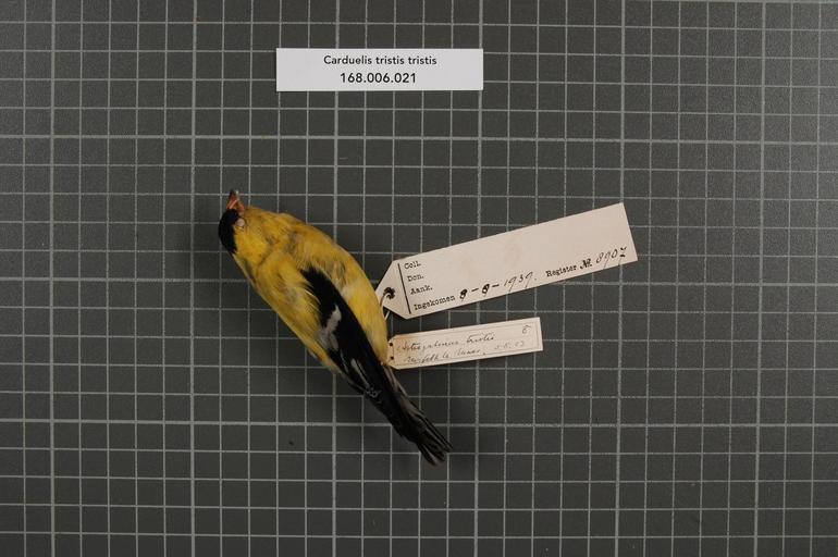 | Keywords: Naturalis Biodiversity Center - RMNH.AVES.8907 1 - Carduelis tristis tristis (Linnaeus, 1758) - Fringillidae - bird skin specimen.jpeg artwork Dimensions artwork Document type Fringillidae Carduelis Individual count 1 Infraspecific epithet tristis Infraspecific rank Institution Naturalis Kind of unit artwork Kind of unit specimen skin Life stage Mass Norfolk Co Medium artwork Nomenclatural code Occurrence ID page Other fields Other versions artwork Permission license Naturalis donation CC-0 Publication location Scientific name Carduelis tristis tristis Linnaeus 1758 Scientific name authorship Linnaeus 1758 male Source url http //bioportal naturalis nl Specific epithet tristis State or province Mass Subject keywords artwork Subject keywords publication Title artwork Title publication Type status Uploaded with GWToolset Naturalis_Biodiversity_Center_-_RMNH AVES 8907_1_-_Carduelis_tristis_tristis_ Linnaeus _1758 _-_Fringillidae_-_bird_skin_specimen http //medialib naturalis nl/file/id/RMNH AVES 8907_1/format/large Media donated by Naturalis Biodiversity Center Songbird specimens at Naturalis Biodiversity Center Spinus tristis museum specimens |